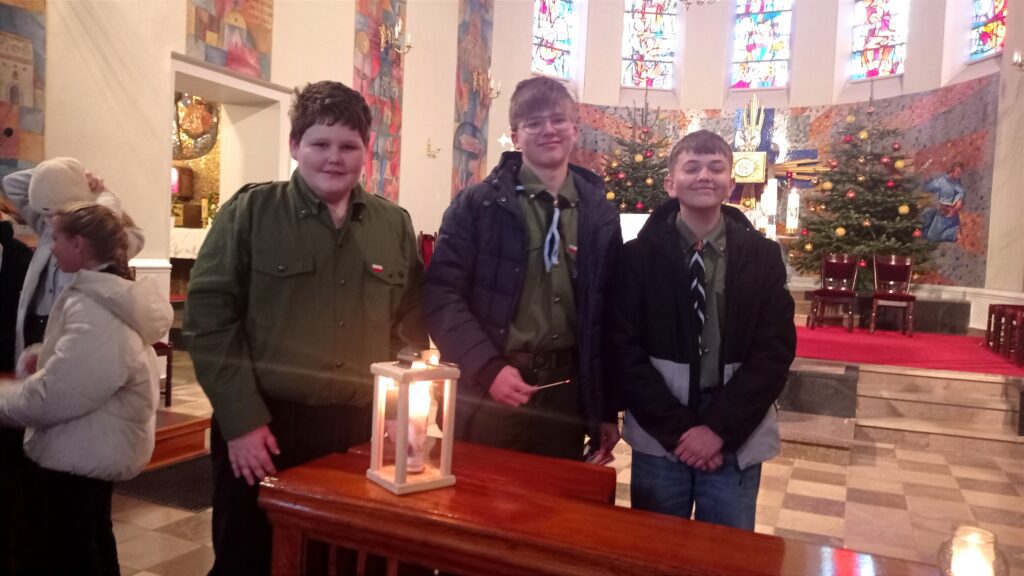 W niedzielę 21 grudnia nasi Harcerze uroczyście wnieśli do kościoła Betlejemskie Światełko Pokoju, które przywieźli z Zakopanego. Bardzo dziękujemy ks. Piotrowi, kl. Tomaszowi i naszym Harcerzom za przywiezienie i rozprowadzeniem Rodzinom naszej parafii światełka na stół wigilijny. Niech w naszych rodzinach panuje zgoda, jedność i miłość na wzór Świętej Rodziny.