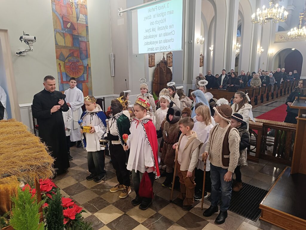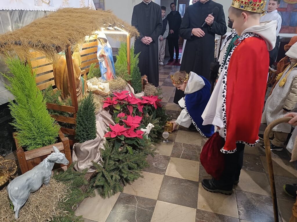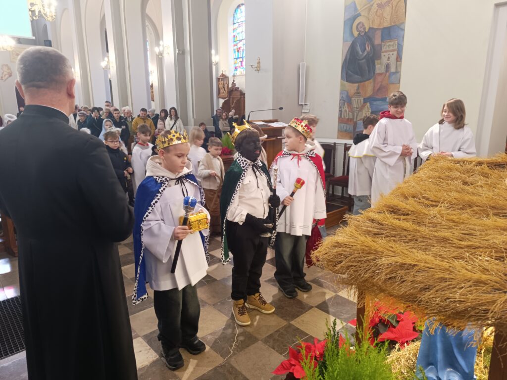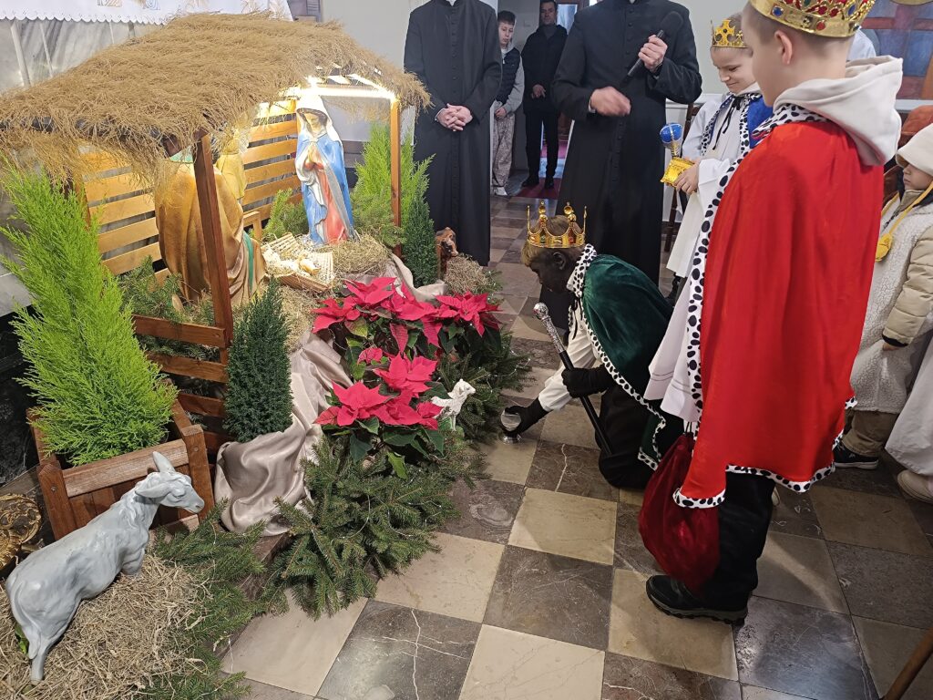 6 stycznia w uroczystość Objawienia Pańskiego tradycyjnie przeżywaliśmy Dziecięcy Orszak Trzech Króli. Dzieci przebrały się w różne postacie związane z Betlejemską Szopką. Byli aniołowie, pasterze, Maryja i św. Józef. Nie mogło też zabraknąć Trzech Króli, którzy uroczyście poprowadzili wszystkie dzieci do Chrystusa, aby tam przy śpiewie kolęd oddać Mu pokłon i złożyć dary. Po Mszy św. dzieci od Trzech Króli / w tym roku w role Mędrców wcielali się nasi ministranci /Miłosz, Adam i Aleksander / za ich pomysłowe stroje otrzymali słodki poczęstunek. Dziękujemy Dzieciom i ich Rodzicom za piękne życie wydarzeniami płynącymi z Ewangelii