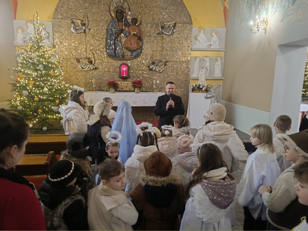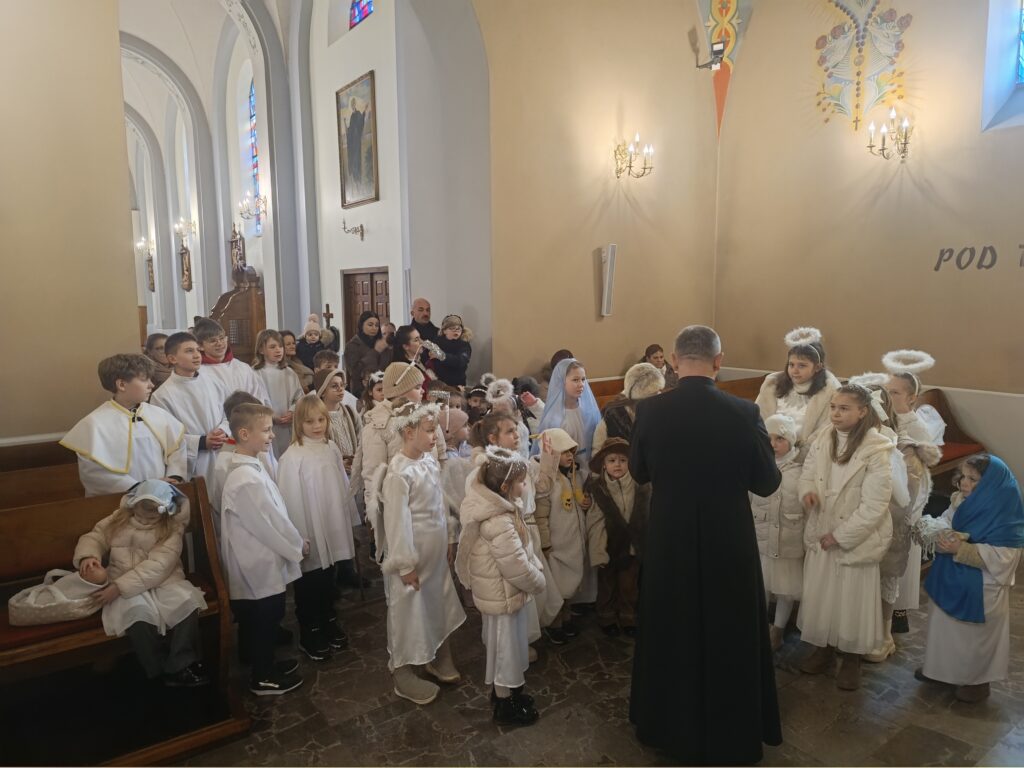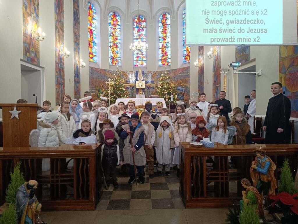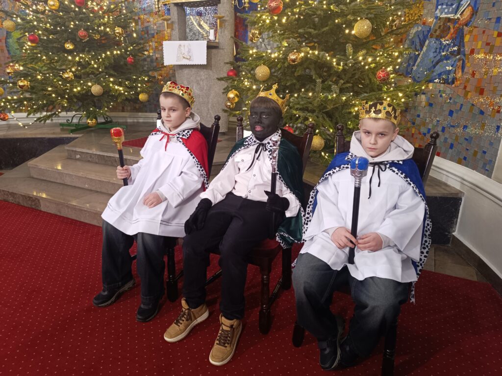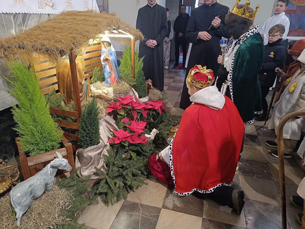 6 stycznia w uroczystość Objawienia Pańskiego tradycyjnie przeżywaliśmy Dziecięcy Orszak Trzech Króli. Dzieci przebrały się w różne postacie związane z Betlejemską Szopką. Byli aniołowie, pasterze, Maryja i św. Józef. Nie mogło też zabraknąć Trzech Króli, którzy uroczyście poprowadzili wszystkie dzieci do Chrystusa, aby tam przy śpiewie kolęd oddać Mu pokłon i złożyć dary. Po Mszy św. dzieci od Trzech Króli / w tym roku w role Mędrców wcielali się nasi ministranci /Miłosz, Adam i Aleksander / za ich pomysłowe stroje otrzymali słodki poczęstunek. Dziękujemy Dzieciom i ich Rodzicom za piękne życie wydarzeniami płynącymi z Ewangelii